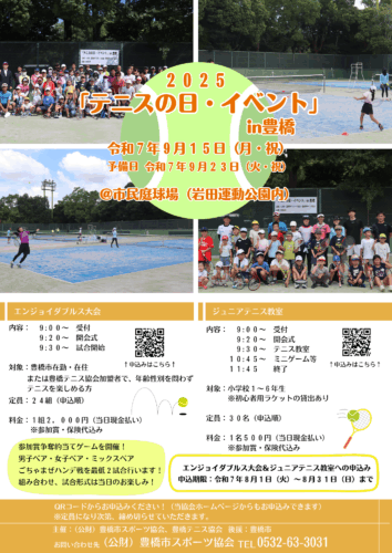 豊橋市スポーツ協会・豊橋テニス協会共同主催で、「テニスの日・イベント」in豊橋が開催されます。