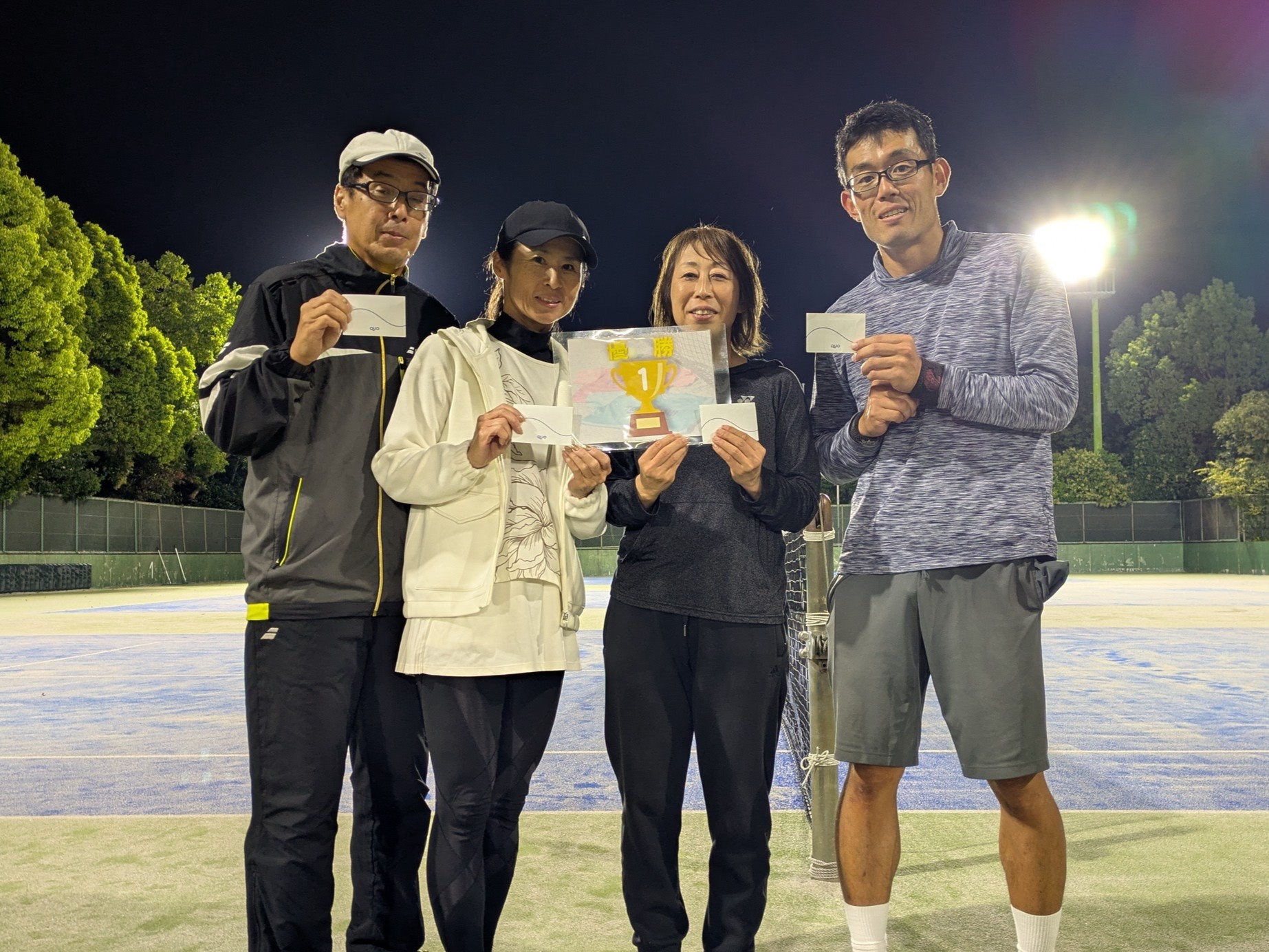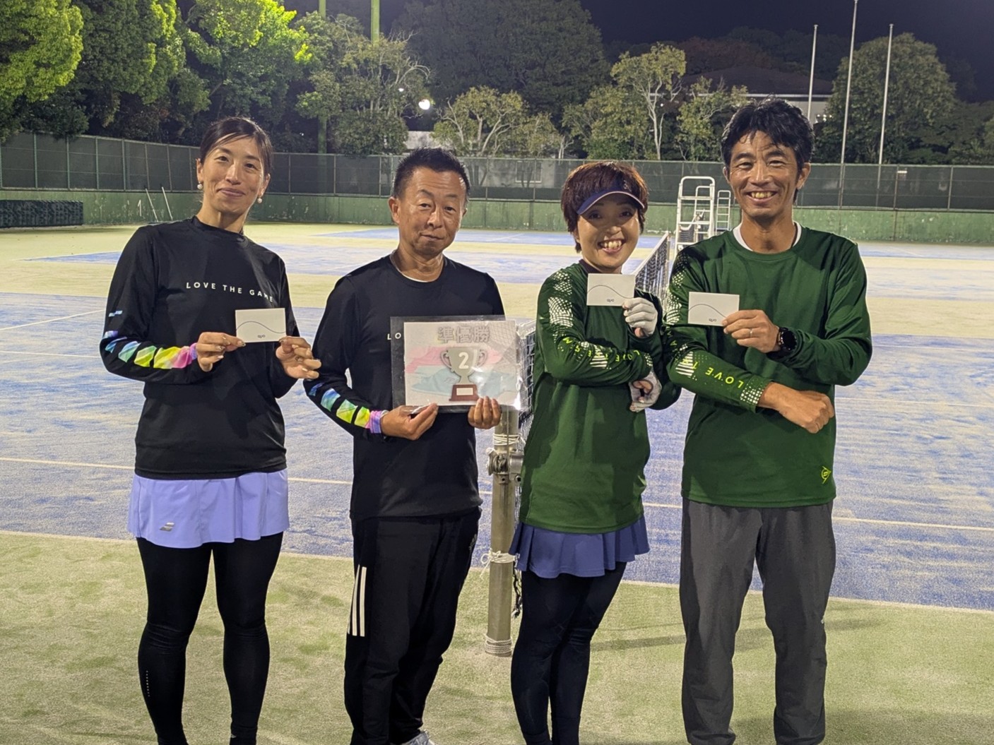 お楽しみ団体戦 準優勝 山田 吉勝(シングルスを愛する会) 古田 弥生(サーラ) 後藤 幸司(デンソー) 石川 亜里子(デンソー)
